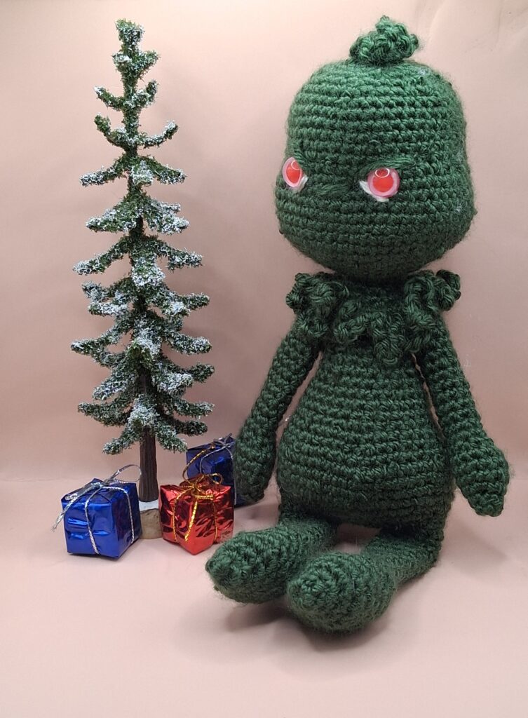 MATERIALES: Estambre #4 en color verde oscuro Estambre #4 en color blanco para bordar Ojos de seguridad de 12 mm y marcador de puntos Gancho de 2.50 mm Aguja lanera Relleno y tijeras A BREVIACIÓNES: MP- medio punto DIS- disminución AUM- aumento PD- punto deslizado SLD- solamente lazo delantero SLT- solamente lazo trasero B R […]