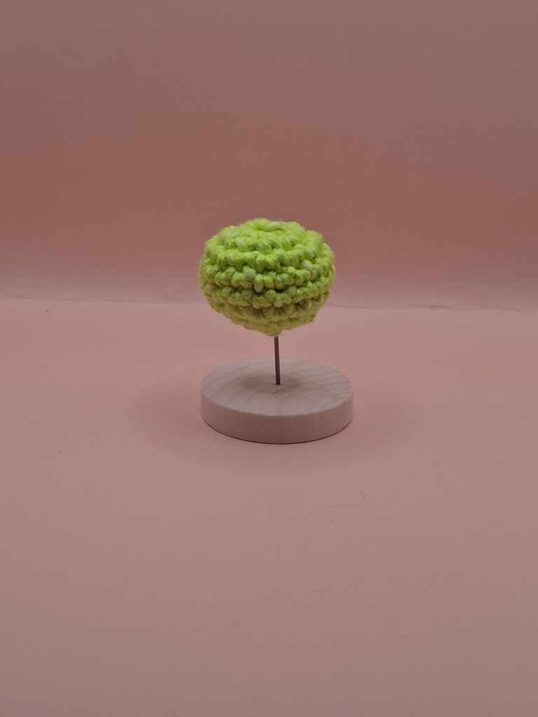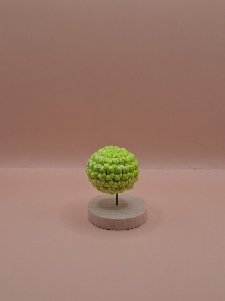 When crocheting an amigurumi, you normally use a single crochet. In the picture above, there is a few little balls, each on a ball stand that look a bit like trees. Each one of these was made using the same pattern but they do look a bit different. They are each a cute way to make an amigurumi, but it is up to you to decide which technique you would like to use.