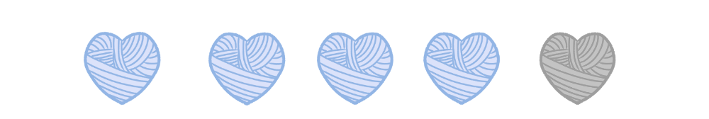 El concepto de este estambre es poder usar sola una bola de estambre que cambia de color cuando lo necesitas. De esta manera, solo tienes que tejer las colas de estambre al principio y al final de un cuadrado. Con una bola de este estambre de corazones puedes tejer 16 de estos cuadritos.